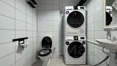 Белоснежные санузлы с шкафчиками, полочками и главной изюминкой: стиральная и сушильная машина!