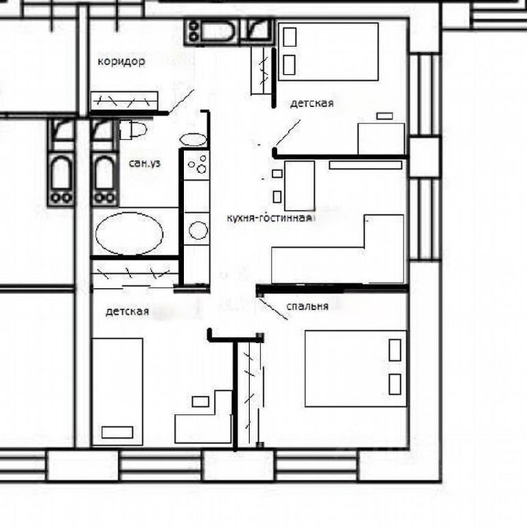 Отличное предложение и очень удобный вариант для семейных пар с детьми: 4 изолированные комнаты по факту (3ка по БТИ) - спальня, детская спальня, кабинет/вторая детская + просторная кухня-гостиная. Большое кол-во мест для хранения (шкафов, полок, ниш, антресолей).