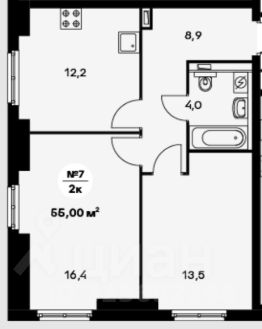 В комнатах уложен ламинат, в санузле и кухонной зоне — плитка. Окна выходят на северо-запад — во двор и на зелёный массив.