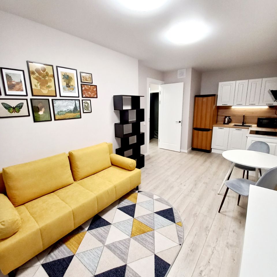 Общая площадь 36 м2, кухня-гостиная 17 м2, спальня 11 м2, вид во двор, с/у совмещенный.