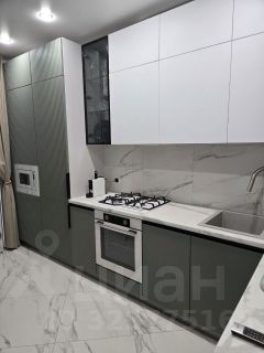 Кухня с плитой, холодильником, микроволновкой, кофемашиной и посудомоечной машиной
