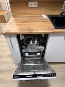 Новая техника: ТВ 50 дюймов, посудомоечная машина, духовой шкаф, варочная панель, холодильник, вытяжка, стиральная машина.