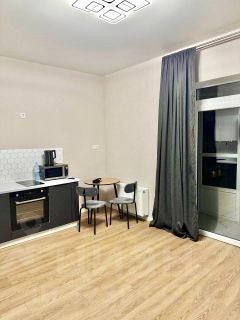 Кухонный гарнитур, стол, стулья, холодильник, стиральная машина, микроволновая печь, пылесос, электро-чайник, шкаф-кровать-трансформер с удобным матрасом, вокруг все ящики отрываются, много мест для хранения, диван, мягкое кресло, шкаф, кондиционер, WI-FI.