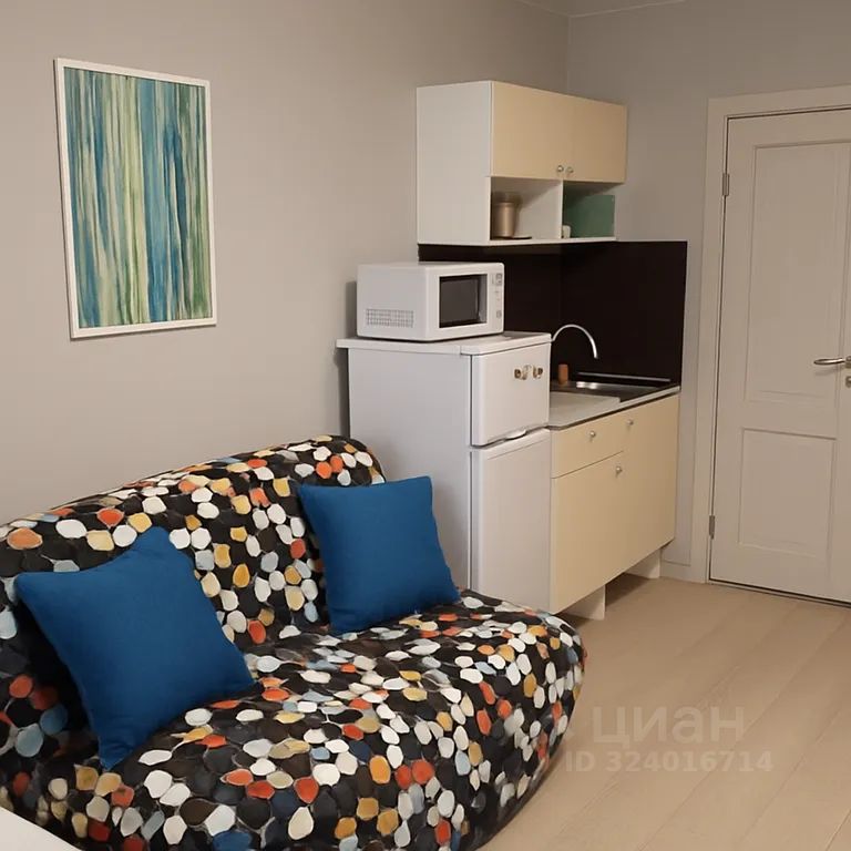 - Кухня с холодильником, плитой, микроволновкой, чайником и посудой.