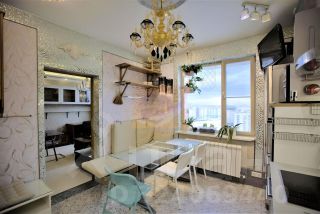 В квартире есть всё необходимое для комфортного проживания: кондиционер, холодильник, телевизор, посудомоечная и стиральная машины. Обстановка включает мебель на кухне и в комнате, а также два совмещённых санузла с ванной. Изюминкой квартиры является балкон, где можно насладиться свежим воздухом и красивыми видами.