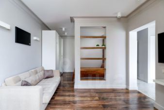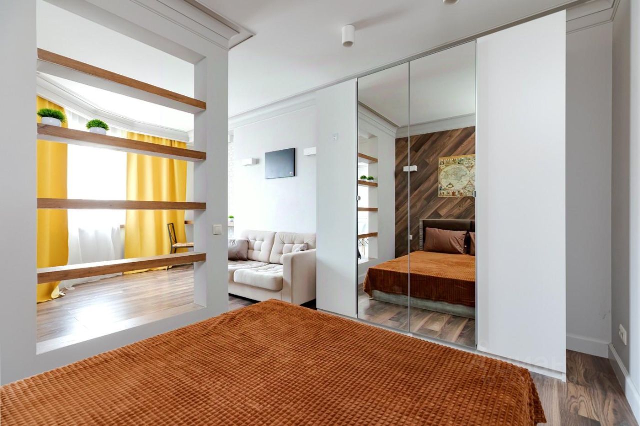 Квартира после дизайнерского ремонта, полностью меблирована: двуспальная кровать, диван, телевизор, кондиционер. Современная кухня с техникой: стиральная машина, индукционная плита, посудомоечная машина, духовой шкаф, холодильник. Окна во двор — тихо и уютно.