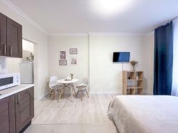 Однокомнатная квартира-студия. Спальных мест 2. Ощутите все преимущества бесконтактного заселения и наслаждайтесь комфортом жилья высокого уровня. Я предлагаю чистоту и комфорт, что означает удобное время заселения и выселения.