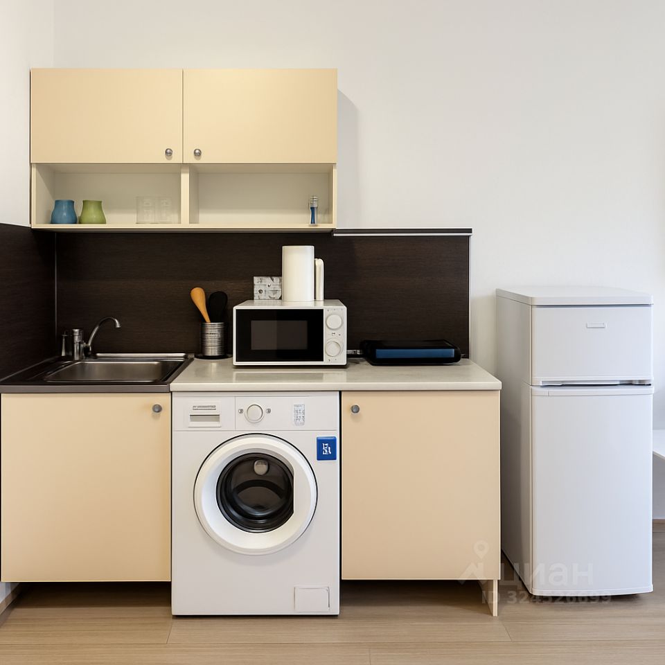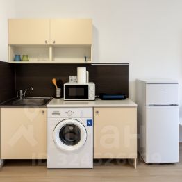 - Кухня с холодильником, плитой, микроволновкой, чайником и посудой