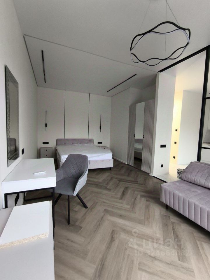 В квартире выполнен дизайнерский ремонт. Светлая и просторная комната с зоной спальни и зоной гостиной создаёт атмосферу уюта и комфорта. На кухне есть вся необходимая техника: кондиционер, холодильник, посудомоечная машина. Ванная комната оборудована большой ванной и стиральной машиной, зеркалом с прдсветуой. Из окон открывается приятный вид, лоджия застеклена.