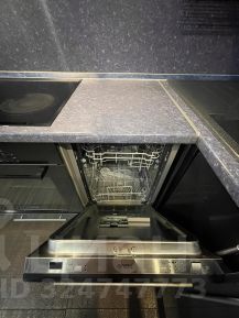 На кухне имеется: кухонный гарнитур под единой столешницей, обеденный стол, три мягких стула, диван, телевизор, холодильник, варочная панель, вытяжка, духовой шкаф, микроволновая печь, фильтр очистки воды, посудомоечная, стиральная, сушильная машины, посуда и бытовая техника. Есть пылесос, утюг, гладильная доска и сушка для белья. Большой и вместительный шкаф.