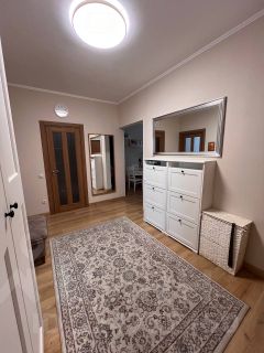 В квартире выполнен дизайнерский ремонт, который радует глаз и создает атмосферу комфорта. Здесь есть все необходимое для комфортной жизни: мебель на кухне и в комнате, а также современная техника, включая посудомоечную машину. Удобная планировка включает один совмещенный и один отдельный санузел, а также балкон, где можно наслаждаться свежим воздухом.
