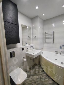Мастер-спальня с двумя окнами, большая двуспальная кровать с ортопедическим матрасом, вместительный гардероб. В квартире два санузла с инсталляцией, в гостевом душевая кабина, в санузле мастер-спальни-джакузи. Вся сантехника GROHE.