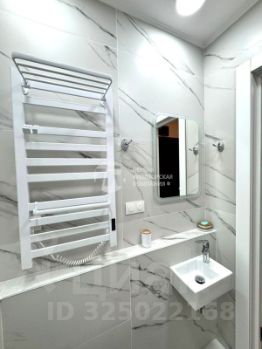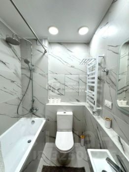 ванная комната: полноценная ванная, электрический полотенцесушитель, зеркало с подсветкой над умывальником, умывальник, утюг, ведро;