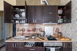 В квартире есть всё необходимое для Вашего комфортного проживания: Wi-Fi, кабельное ТВ, стиральная машина, фен, утюг, гладильная доска, сушилка для белья. Микроволновая печь, плита, холодильник, чайник, набор посуды. Комплекты застеленного постельного белья, полотенец все входит в стоимость проживания.