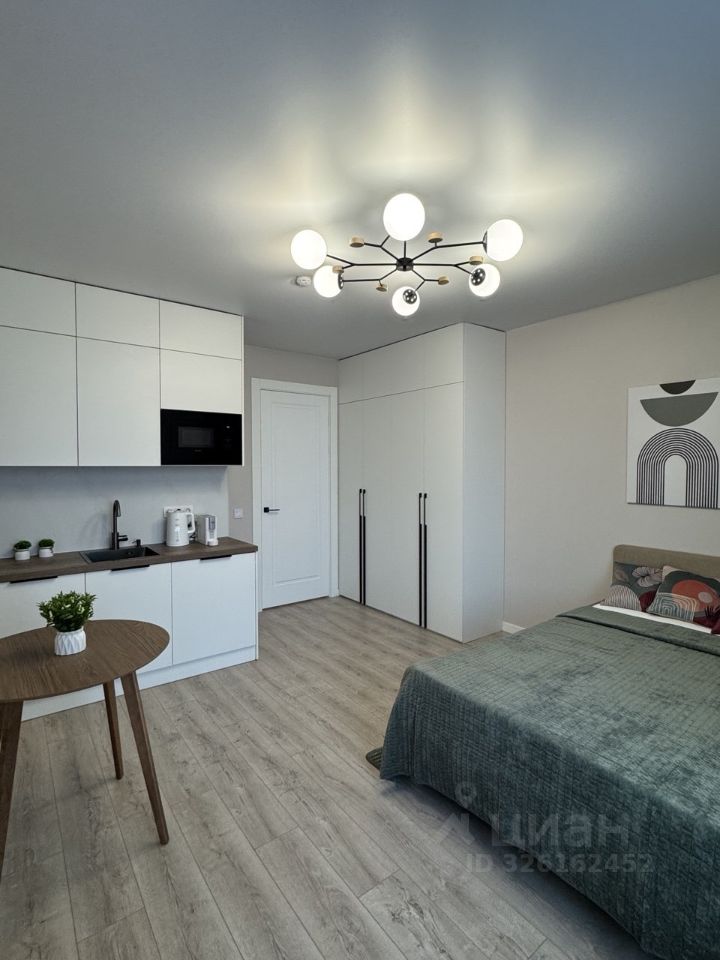 Впервые сдаётся студия в бизнес ЖК Спутник на 15 этаже 31-го этажного дома. Вид из окон на коттеджный посёлок Резиденция Рублёво. На 1-х этажах есть все необходимые магазины и пункты выдачи. Квартиранта рассматриваем на длительный срок, без животных и детей. В ближайшее время будет дополнен интерьер стульями , журнальным столиком и телевизором( на фото их нет ) .