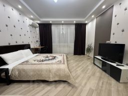 Возможно размещение до 9 человек. В квартире имеется спальня с двуспальной кроватью, шкафом, телевизором со Smart TV. В гостиной есть двуспальная кровать, раскладывающийся диван, телевизор, кондиционер и рабочая зона. Также есть детская с двуспальной кроватью, одноместным раскладывающимся диваном, шкафами, письменным столом, карандашами, игрушками, развивающими играми, конструктором и детскими книгами.