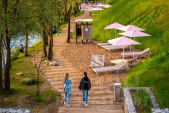 В самом ЖК сетевые магазины 24/7, кафе, фитнес центр. В 400 метрах обустроенный пляж, для жильцов ЖК вход бесплатный. Прямо у дома парк Липовая роща.