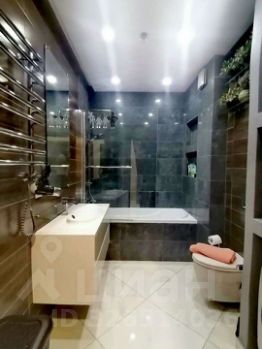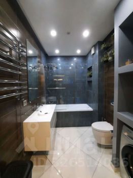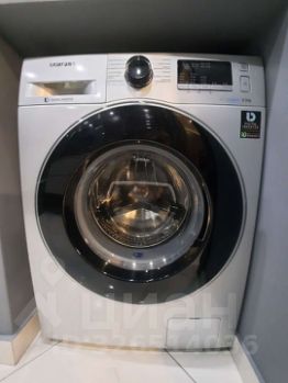 Современный санузел с душем и ванной стиральной машиной также имеется фен.