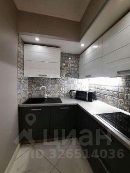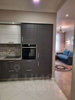 Квартира оборудована полноценной кухонной зоной с необходимой бытовой техникой (холодильник с небольшой морозильной камерой, варочная поверхность с вытяжкой, микроволновая печь, чайник) и посудой.