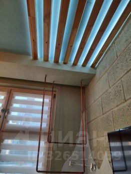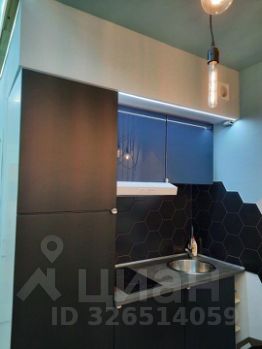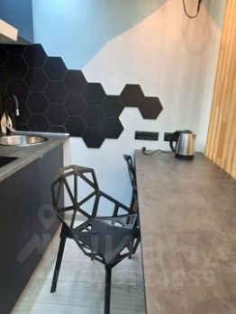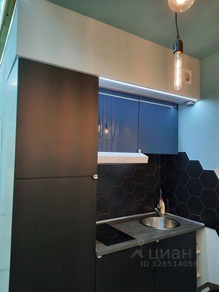 Квартира оборудована полноценной кухонной зоной с необходимой бытовой техникой (холодильник с небольшой морозильной камерой, варочная поверхность с вытяжкой, микроволновая печь, чайник) и посудой.