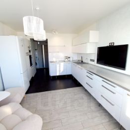 Для взыскательных арендаторов! Редкое предложение! Очень комфортная, уютная, домашняя квартира с потрясающими видами на Москву-реку, набережную и панораму города! Квартира расположена на 24-м этаже современного 25-и этажного дома. Общая площадь 60 м2, кухня-гостиная 16 м2, спальня 14 м2, детская 20 м2, раздельный санузел, застекленная лоджия. Квартира действительно атмосферная, наполненная теплом и уютом! В ней замечательная аура, всё продумано до мелочей и сделано с любовью. В КУХНЕ-ГОСТИНОЙ преобладают белые и светлые тона в отделке и мебели, что, в сочетании с огромным остеклением, наполняет её светом, объемом и воздухом. Это настоящая жемчужина квартиры. С точки зрения функциональности здесь есть всё. - Огромный кухонный гарнитур с большой столешницей и множеством шкафов позволит без проблем разместить всю кухонную утварь. - Вся бытовая техника также в наличии: варочная панель, духовой шкаф, микроволновая печь, посудомоечная машина, холодильник, электрочайник, кофеварка, телевизор. - Установлены фильтры для питьевой воды. Имеется принудительная вентиляция. В зоне гостиной - большое уютное кресло-трансформер (раскладывается как спальное место), пуфик, стильный столик. Особое место - это барный стол, в виде которого выполнен подоконник, где, за чашкой чая или кофе, или уютно расположившись с книгой в руках, можно проводить время, наслаждаясь замечательными видами природы и города. В СПАЛЬНЕ продуманы цветовые решения и освещение. Удобная двуспальная кровать с качественным матрасом - залог здорового сна и добрости по утрам! Комфортный климат под себя можно отрегулировать с помощью кондиционера. Также в спальне имеется комод, телевизор, декоративный столик, а также система хранения, состоящая из двух вместительных шкафов, навесных полок и ящиков в кровати. В ДЕТСКОЙ - неповторимая атмосфера детства, гармонии, радости. Качественная 2-х уровневая детская кроватка, детские шкафы (имеется даже игрушечная кухня)), два школьных рабочих места - всё это создано для уюта и полноценной жизни маленьких членов семьи. Здесь же расположен большой удобный 4-х створчатый шкаф-купе, куда помещается огромное количество вещей и одежды. Из детской - выход на застеклённую лоджию. В летний период на ней также можно с удовольствием проводить время (имеется мягкая скамья и столик), любуясь видами за окном. Установлены стиральная и сушильная машины. САНУЗЕЛ полностью оборудован всем необходимым. В ПРИХОЖЕЙ - шкаф для сезонной одежды, 2 обувницы, стильная деревянная консоль. Квартира отделена от лифтового холла тамбуром на 4 квартиры. Все соседи - не шумные и дружелюбные. Чистый подъезд с консьержкой. Въезд во двор через шлагбаум. С парковкой проблем нет. Двор зеленый, с детской и спортивной площадками. Рядом протекает р. Банька - со двора слышен приятный шум воды и пение живущих там птиц. Вся инф-ра в пешей доступности (супермаркеты, кафе, рестораны и др.). Практически во дворе - крупнейшая в Подмосковье школа "Полёт". До метро - 12 мин. пешком.