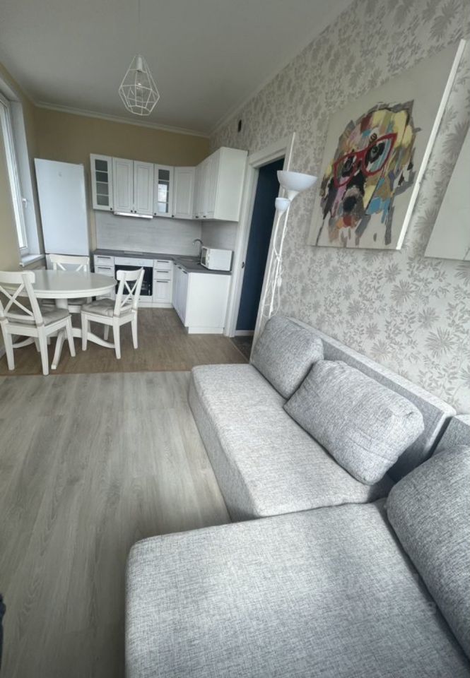 Большая кухня - гостинная с двумя окнами. Вид на Липовую Рощу и на Рублевские коттеджи, воду и внутренний двор.