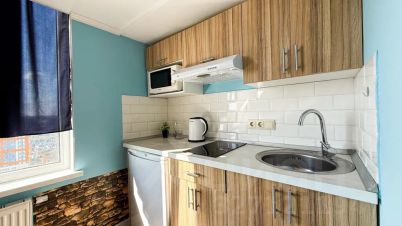 Студия полностью оборудована для комфортного проживания: телевизор, бесплатный Wi-Fi, стиральная машина, утюг, фен, варочная панель, чайник и микроволновка. Есть штопор и бокалы. Регулярная уборка профессиональной химией и дезинфекция от насекомых, а также смена белья на чистое и свежее проводятся перед каждым заездом.