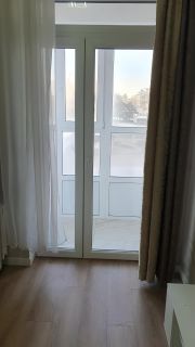 В квартире сделан современный евроремонт. Вас порадует просторная кухня площадью 10 кв. м, полностью укомплектованная мебелью и техникой: холодильником, посудомоечной машиной, кондиционером и телевизором. В комнате также есть вся необходимая мебель. Совмещенный санузел оборудован ванной, что добавляет удобства. Окна выходят на улицу, обеспечивая много естественного света, а из балкона открываются приятные виды.