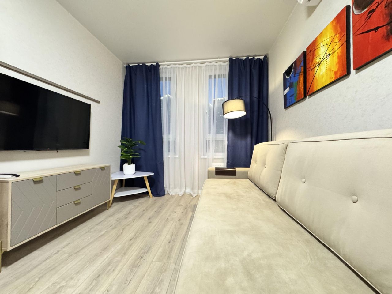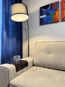 В апартаментах есть большая кухня-студия со всем необходимым набором техники, гостиная зона с удобнейшим диваном-двуспальной кроватью, а также отдельная уютная спальня с камином. Есть места для хранения вещей, уютная светлая ванная комната, удобный смарт замок. Окна во двор без машин, сс частичным видом на Рублевский залив. В шаговой доступности все необходимые магазины и пункты доставок, во дворе детский сад, школа, скоро будет метро в 200 метрах.