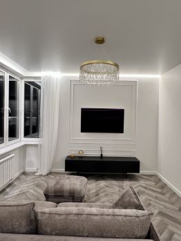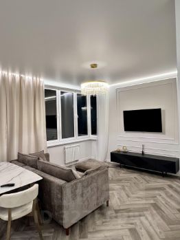 Квартира с дизайнерским ремонтом, полностью готова для комфортного проживания. В ней есть вся необходимая мебель как на кухне, так и в жилых комнатах. Ванная комната оборудована ванной, что прекрасно подойдет для вечернего расслабления. Техника представлена кондиционером, холодильником, посудомоечной и стиральной машинами, а также телевизором — все, что нужно для удобства.