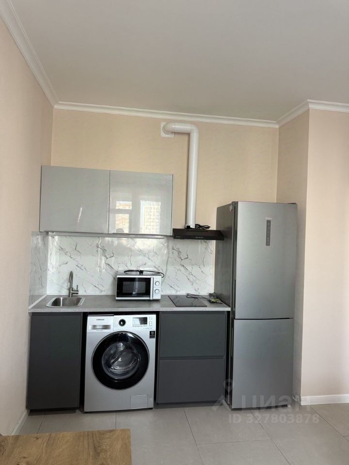 В квартире выполнен косметический ремонт (покраска стен, новый ламинат).Есть всё необходимое для комфортного проживания: мебель на кухне и в комнате, новый матрас. Из техники — холодильник, телевизор, стиральная машина, микроволновая печь,вытяжка, чайник. Санузел совмещённый, с ванной. Также имеется балкон, где можно отдыхать или хранить вещи.Сделан хороший клининг.