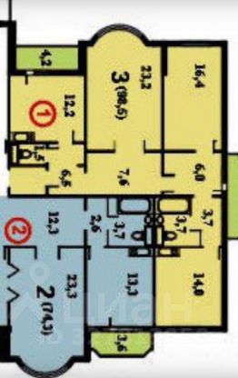 1 лоджия, 1 балкон