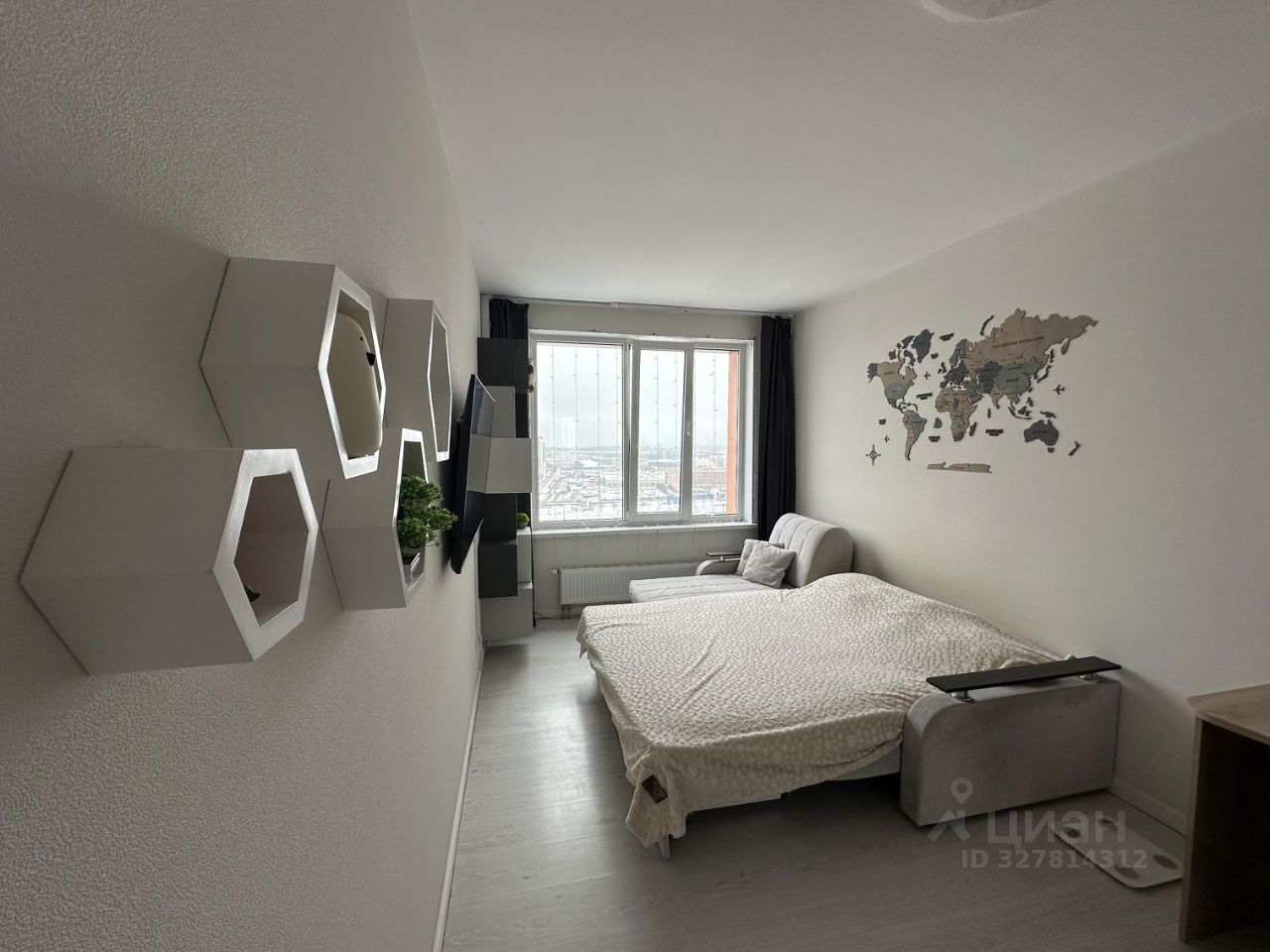Из техники: 2 телевизора (кухня и спальня), Apple TV, кондиционер, капсульная кофемашина, чайник, микроволновка, духовка, холодильник, стиральная машина, робот-пылесос, электрический карниз, умный дом через Алису (управление светом, кондиционером, карнизом, телевизором и т.д.).