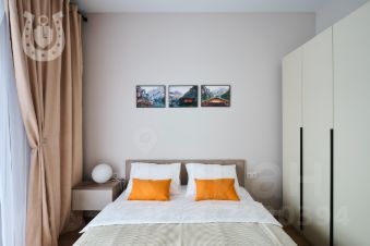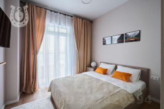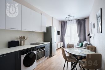 Функциональное планировочное решение располагает общей зоной кухни-гостиной, двумя спальнями, просторной лоджией, совмещенным сан/узлом и коридором. Квартира оборудована всей необходимой мебелью и техникой для комфортного проживания. Кухонный гарнитур вмещает в себе все необходимое в современных реалиях: посудомоечная машина, духовой шкаф, варочная панель, вытяжка, а также микроволновая печь.