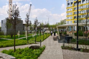 Благоустроенная территория с детскими площадками и комфортными зонами отдыха. Тихие и доброжелательные соседи.