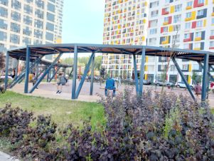Современный высотный дом со скоростными лифтами и подземным паркингом, презентабельные входные группы, круглосуточная охрана. Жилой квартал с дворами без машин, с оригинальной концепцией организации дворового пространства. Современная городская среда с газонами, озеленением и ландшафтным дизайном. Есть детские площадки, спортивные тренажеры для взрослых, места для отдыха и многое другое.