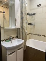 В квартире достойный ремонт. чистая. светлая, с современной мебелью и комплектом бытовой техники. Большая комната, просторная кухня, балкон с панорамным остеклением.