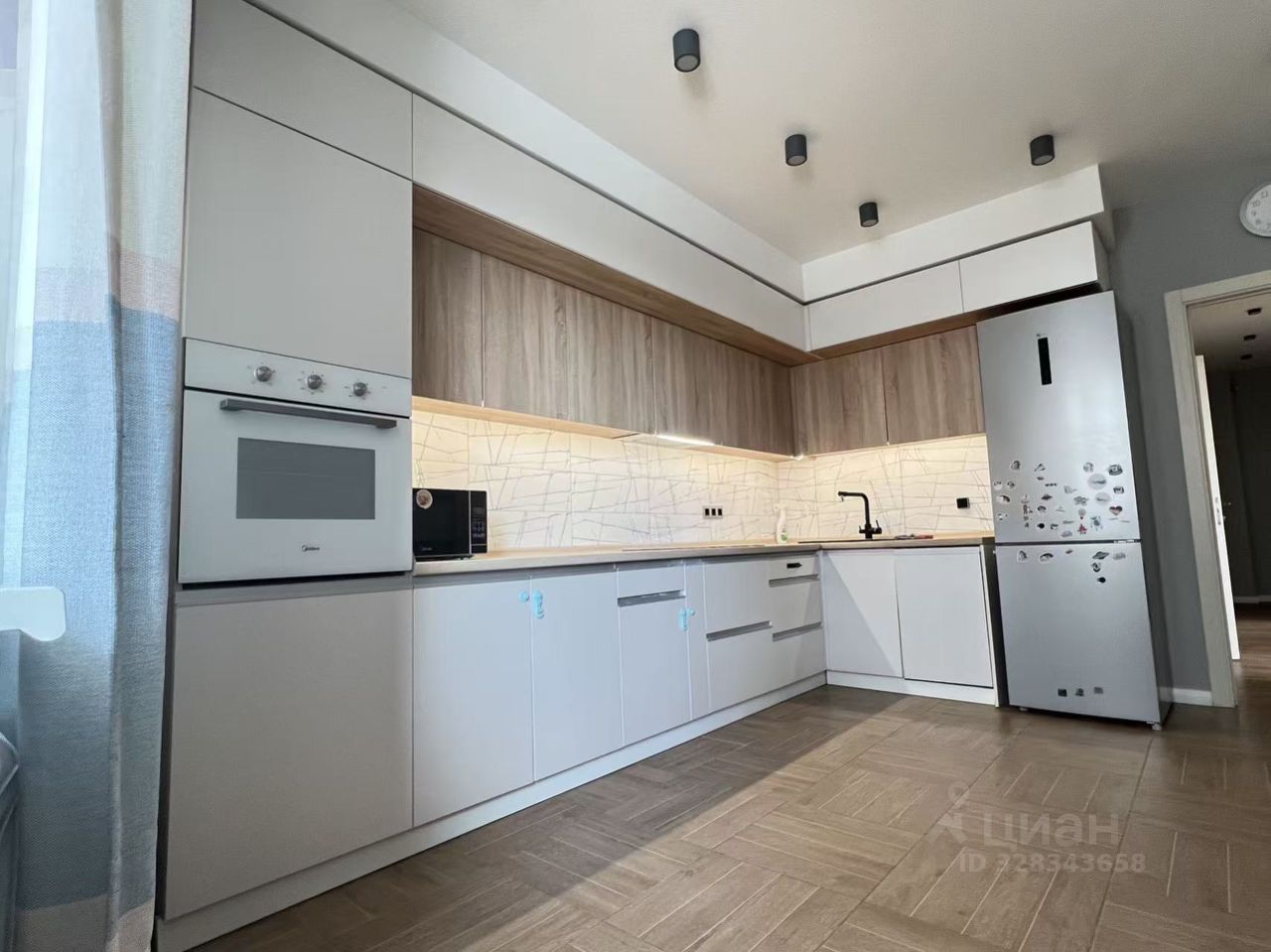 Стильная и современная кухня 15 кв.м. оснащена необходимой техникой.