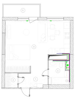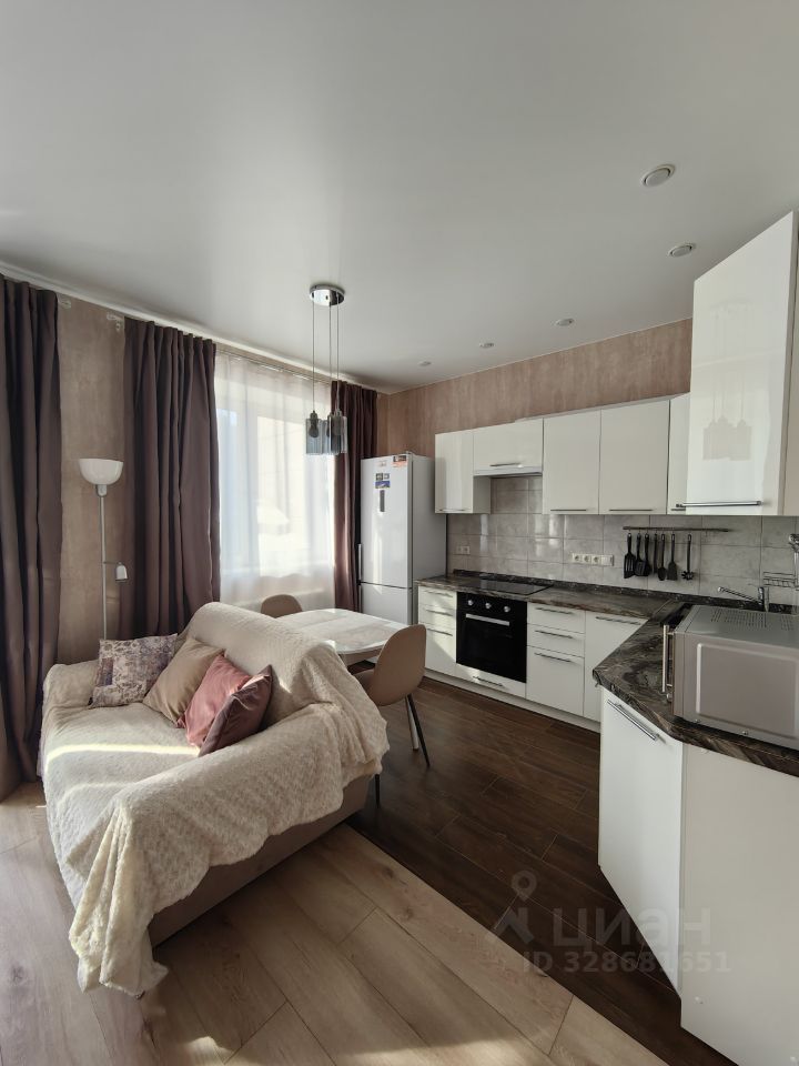Площадь: 37.9 кв. метров, плюс большой застеклённый балкон с панорамными окнами