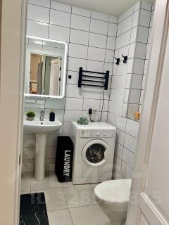 Ванная комната: стильный современный дизайн, сантехника, стиральная машина, удобный шкафчик для хранения.