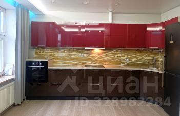 Большая кухня-гостиная, встроенная кухня под единой столешницей из искусственного камня, с литой мойкой, фурнитура блум с подъемными механизмами и во всех шкафах.