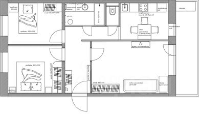 3 раздельные комнаты: 2 спальни и гостиная, кухня отдельно.
