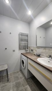 Полностью комплектована техникой: стиральной и посудомоечной машинами, холодильником, микроволновой печью, телевизором и кондиционером.
