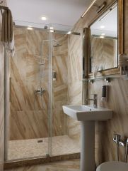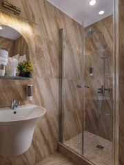 Номера представлены одной двухместной или двумя полуторными кроватями. В номере телевизор, стол, стул, санузел с душевой кабиной.