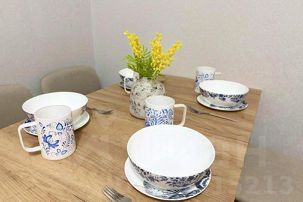 - Кухонная утварь: кастрюли, сковородки, полный -- набор посуды и кухонных приборов