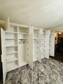 КОМНАТА включает в себя: огромный высокий ШКАФ ВО ВСЮ СТЕНУ с антресолями и зеркалами. Два ковра, СТЕЛЛАЖ, отделяющий гостиную часть от зоны отдыха с кроватью. Новый КОМОД напротив кровати. Толстый и вместительный подоконник из массива дерева также отлично подходит для хранения и расположения вещей. КОНДИЦИОНЕР обслужен. ТЕПЛАЯ ОСТЕКЛЕННАЯ ОТДЕЛАННАЯ ДЕРЕВОМ ЛОДЖИЯ со своим стеллажом для хранения вещей и банок. На лоджии установлена удобная система сушки белья. Качественные металлопластиковые окна и балконная дверь.