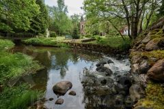 Замок построен в удалённом месте, на реке Банька. Уникален тем, что это единственный замок Подмосковья, по территории которого протекает река. На просторном участке расположены лесной массив с вековыми деревьями, открытая веранда в окружении сосен и елей и видом на воду.