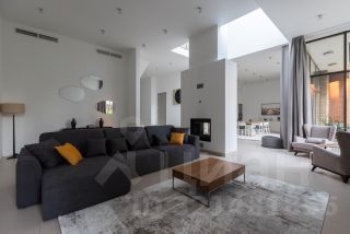 Жилой Комплекс Резиденция Рублево, 1 км Новой Риги, напротив Мякининской поймы. Дом общей площадью 450 кв.м. располагает: 5 спален, 5 с/у, гостиная, кухонная зона, гардеробные, кабинет, камин, хозяйственные помещения, панорамное остекление, террасы, паркинг. Дом меблирован. Участок камерно расположен, выполнен ландшафтный дизайн. Поселок строго охраняем, видеонаблюдение по периметру поселка, на территории поселка: парковые аллеи, детский сад, в 5-ти минутах на автомобиле Крокус Сити, инфраструктура Рублево-успенского шоссе, пляж Рублево, гимназия имени Примакова, до центра Москвы 15 минут на автомобиле.