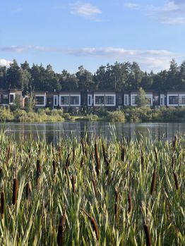 Таунхаус находится в охраняемом поселке на берегу природного озера Лесное. Есть детские площадки, футбольное поле для детей, летом в озере можно купаться. Есть мангал. Прекрасные соседи. Отличная управляющая компания, сразу можно вызвать сантехника или электрика. Рядом магазины и станция МЦД Аникеевка