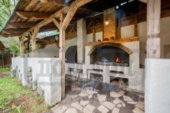 УЧАСТОК: просторный участок 100 соток, по которому протекает река Банька. Множество хвойных и лиственных деревьев. Открытая веранда в форме юрты. Мостик через реку, лавочки по всему участку. Парковка на 15 автомобилей. В отдельном здании расположена зона СПА. Эпичная лестница, ведущая к замку.